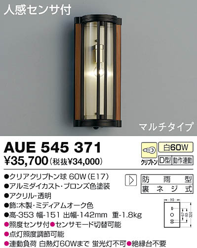 AUE545371*コイズミポーチ灯・電気工事必要マルチタイプ人感センサー付価格: 17,850円レビュー評価: 0.0 レビュー数:0 ◆定価より50%OFF【メーカー】コイズミ【商品名】防雨型ポーチ灯■電気工事必要■マルチタイプ人感センサー付■60Wミニ電球付(E17)■絶縁台が必要な場合はリモコン・足元灯・木台のカテゴリーをご参照ください*イメージです 実際の商品と異なる場合があります |